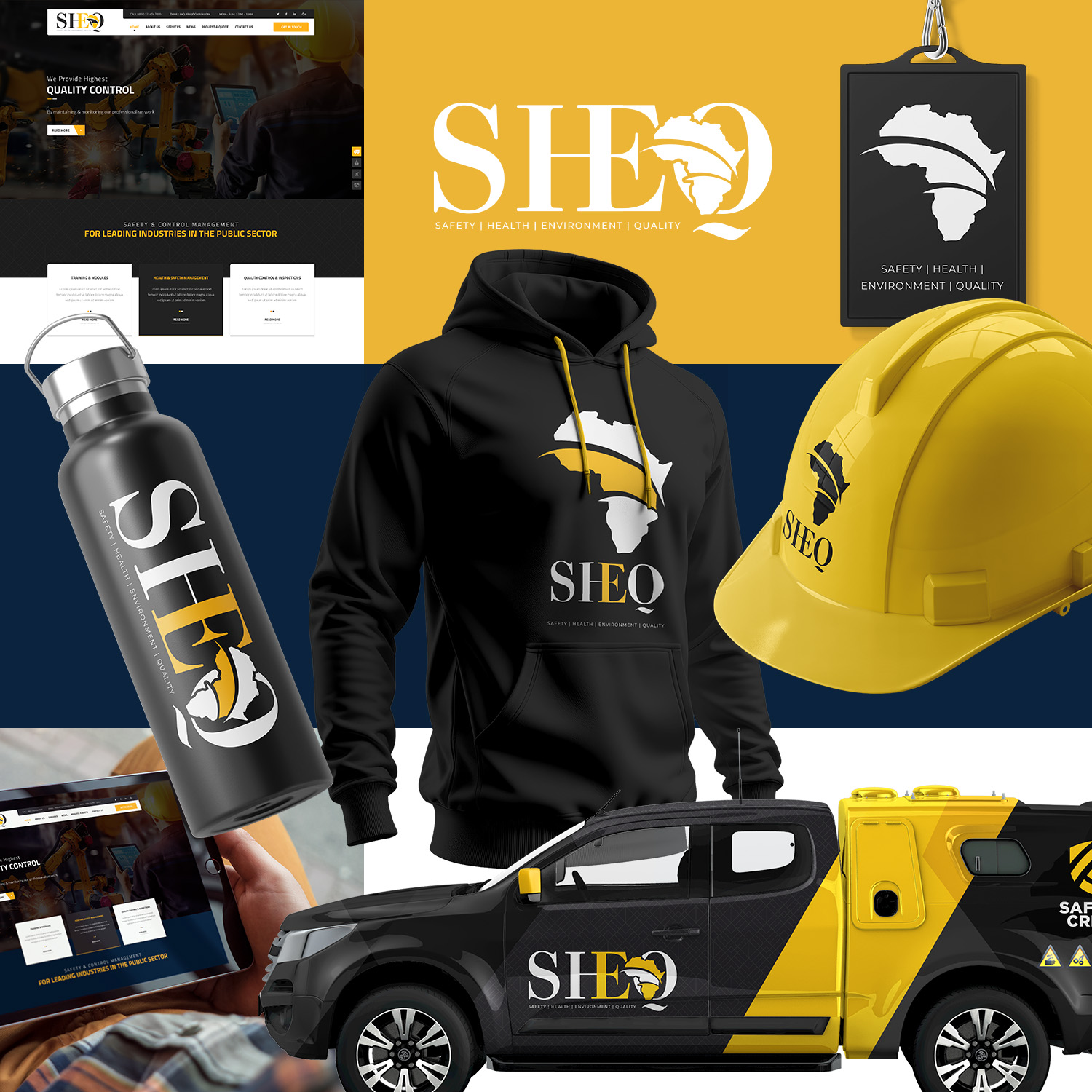 For SHEQ, I developed a bold and impactful brand identity that reflects their commitment to safety across construction and industrial environments. The logo and visual system were built around high-visibility colours, bright safety yellow, deep blue tones, and strong black accents, creating an instantly recognisable and authoritative presence. From print materials to branded gear and signage, every element was designed for clarity, durability, and maximum visibility, ensuring the brand communicates trust, safety, and professional compliance at every touchpoint.